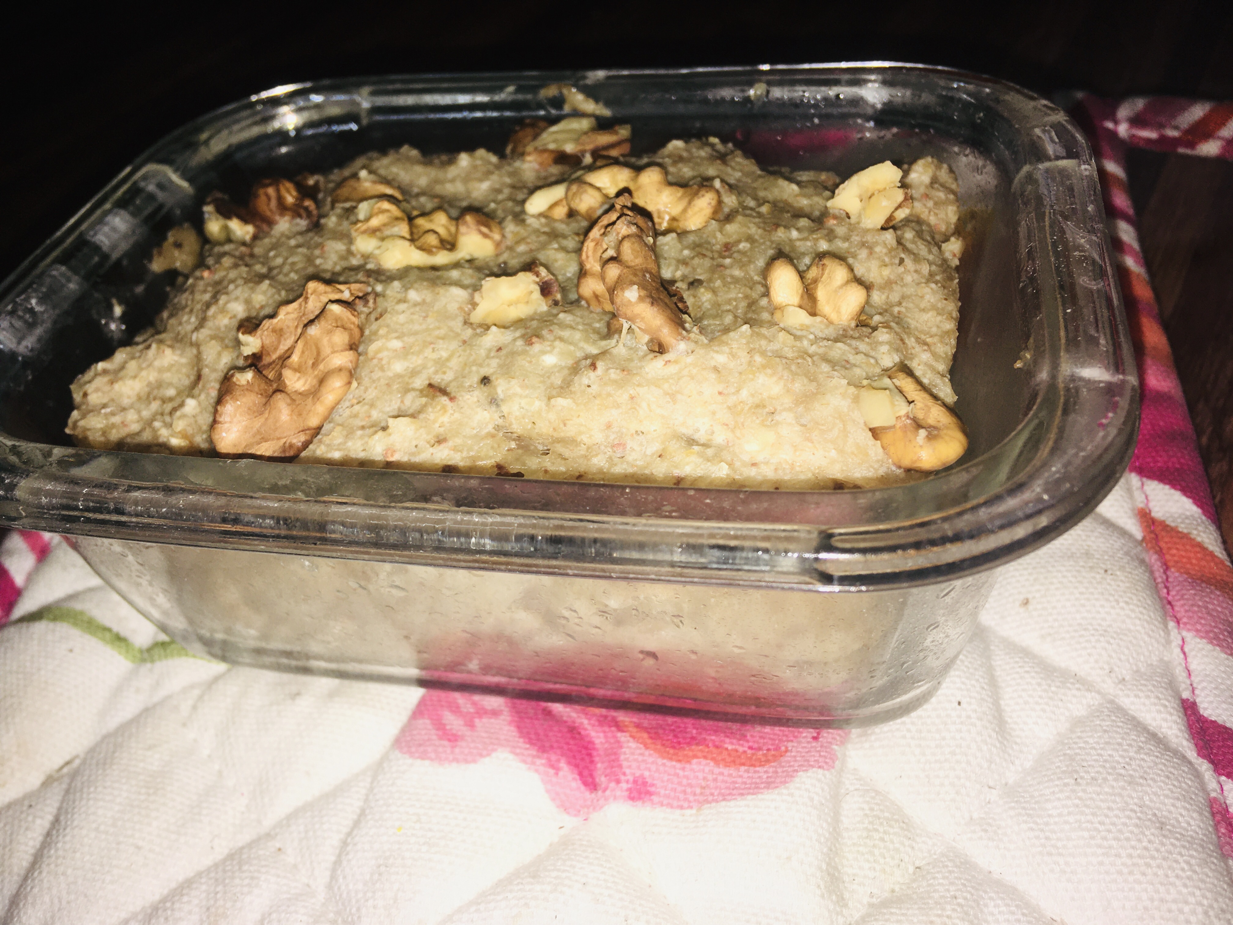 2. Add milk and a teaspoon of cinnamon. Mix everything together with a fork or you can use a hand blender.