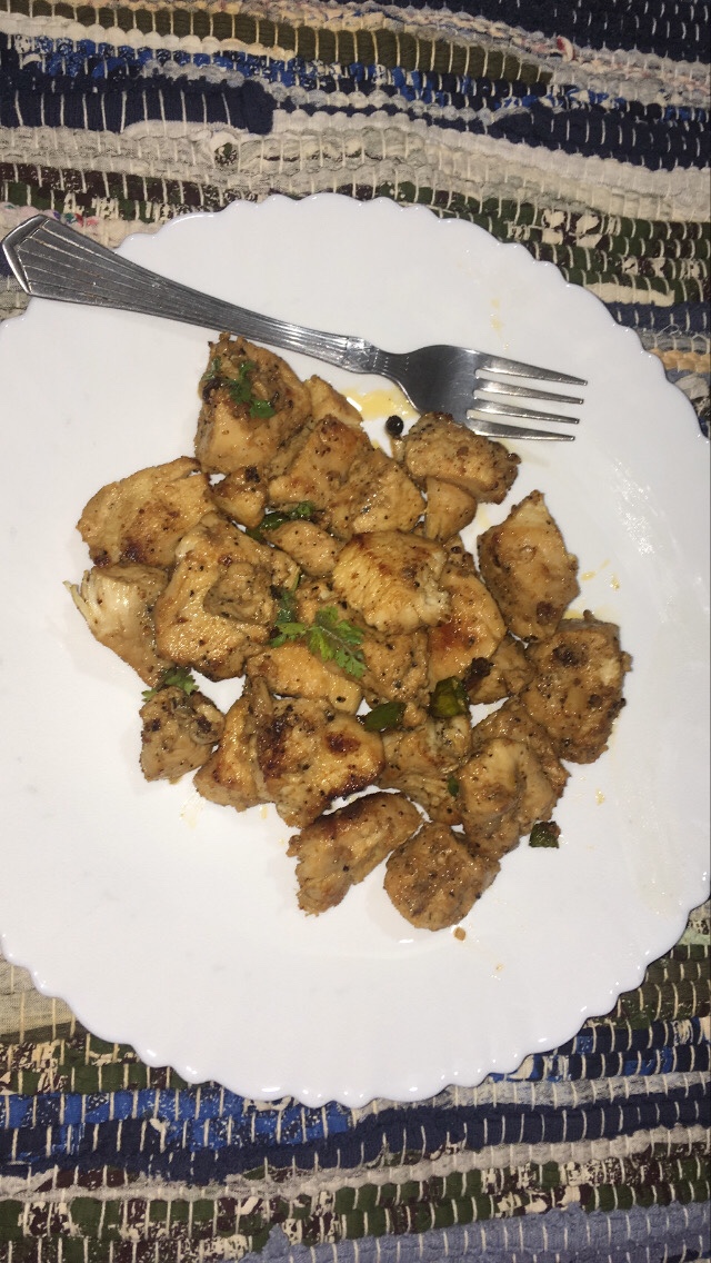 1.Heat oil and butter in a flat pan and add the whole spices. 2. Once it splutters add the chicken pieces one by one without the marinade. 3. Cook this on high flame for 4/5 minutes on both the sides it will get slightly brown. 4. Now add the remaining marinade into the pan and cook this now on low flame for max 10 minutes. 5. It’s slightly creamy now and add chopped green chillies, little bit of garam masala and chopped fresh coriander. 6. Cook till the liquid is dried and chicken is tender.