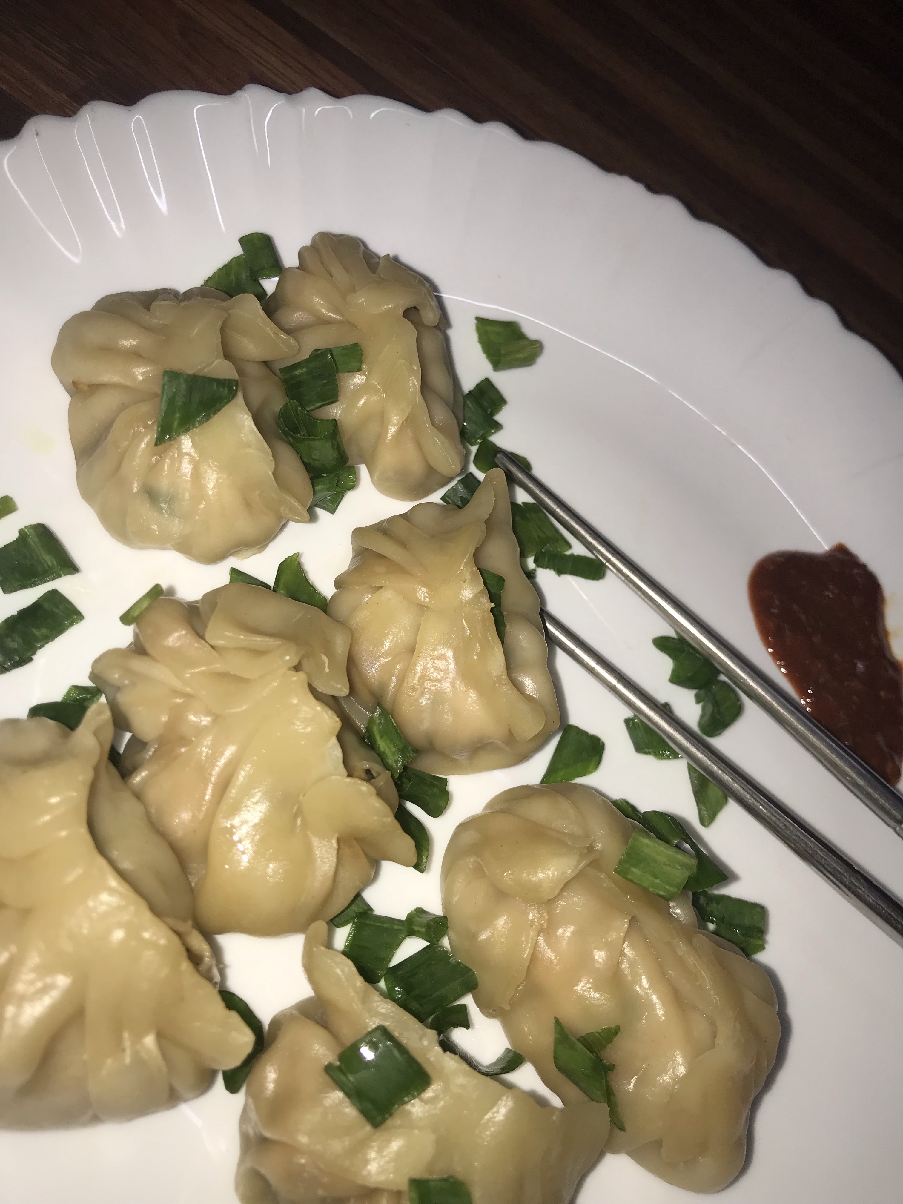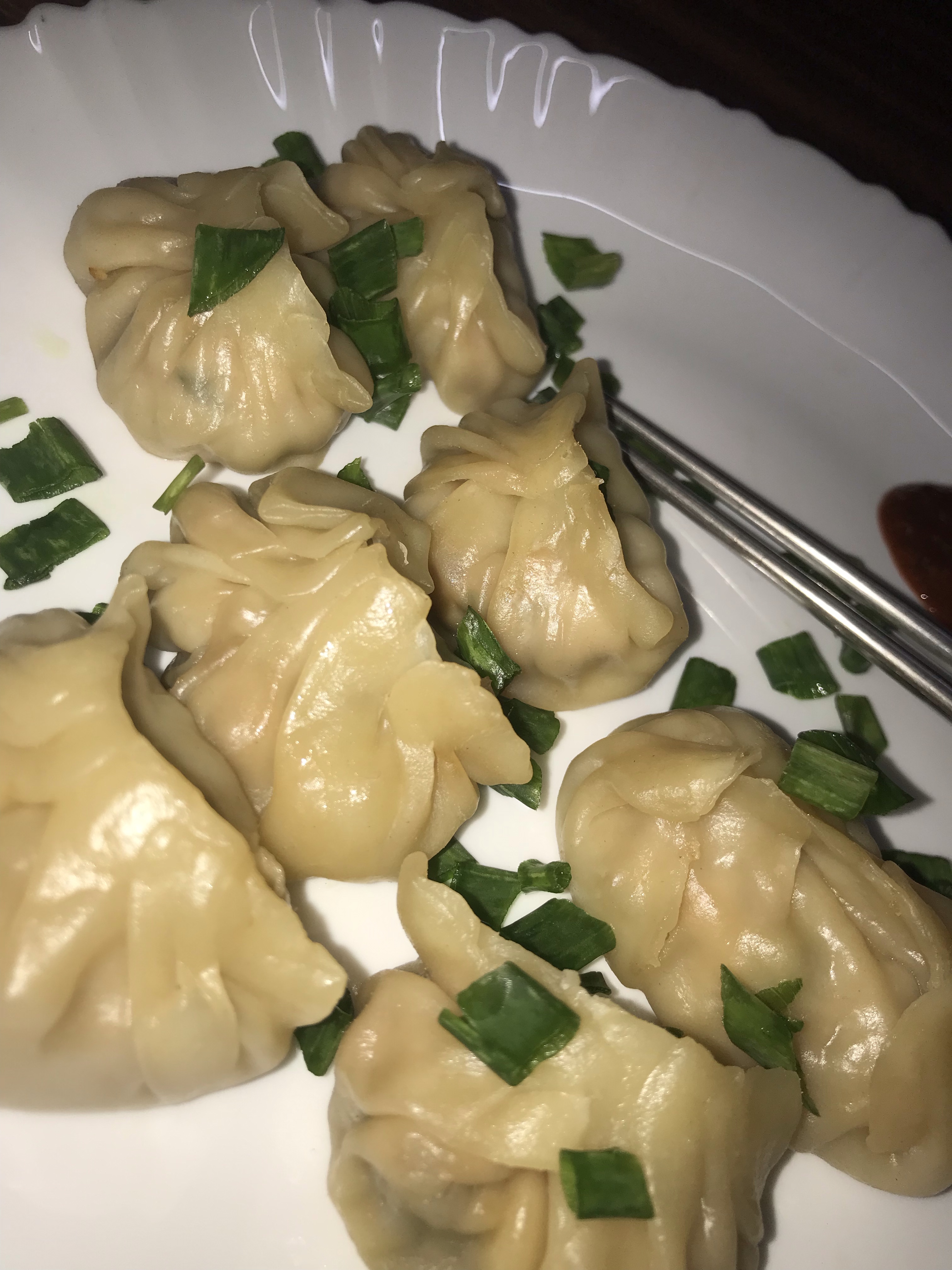 Once the covering appears to be transparent it seems to be cooked 💁🏻♀️. When all the chicken momos are steamed up, serve it hot with spicy chili garlic chutney.